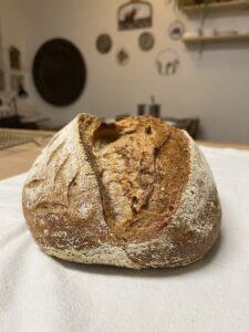For our daily bread, we stick with 100% whole wheat, but for special occasions, or if I’m taking bread to a friend, this is what I make. The flavor is unparalleled compared to straight white sourdough. Blending 30% whole wheat in with 70% of all purpose flour creates a flavor that will have people asking…
